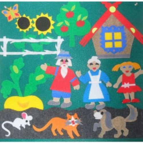 Персонажей и дополнительные элементы (репка, домик, яблоня и др.) можно располагать в любом месте игрового поля. Благодаря этому ребенок может проиграть полный сюжет сказки. Герои как будто оживают и перемещаются по полю, создавая реалистичный сюжет.