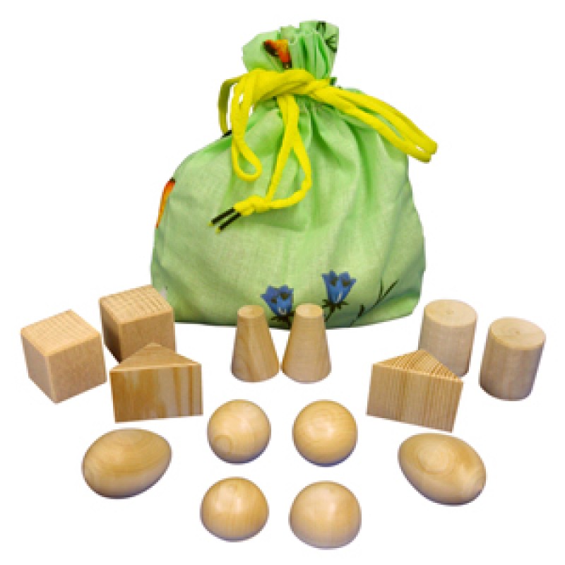 Представляет собой набор из 12 деревянных геометрических тел (куб, шар, эллипсоид, цилиндр, усеченный конус, полусфера), изготовленных из дерева.