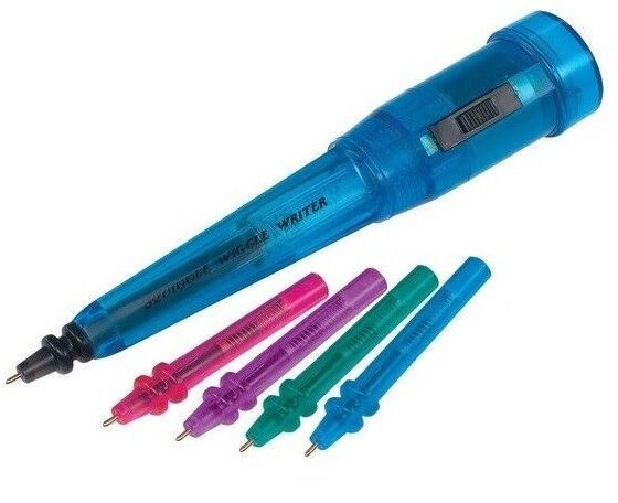Вибрирующая ручка со сменными цветами. Когда колпачок закрыт, ручка становится стимулятором для ротовой полости во время логопедических занятий.