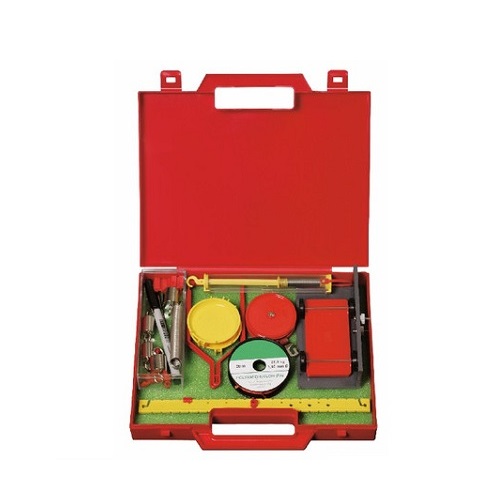 Набор предназначен для демонстрации законов механики. Все элементы набора размещены в ячейках из пористого материала в пластиковом чемодане.