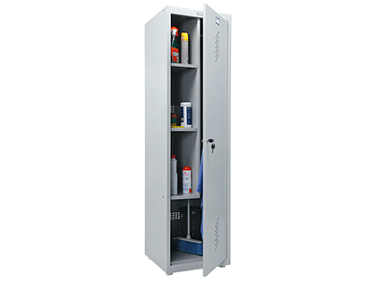 в комплект входят : вертикальная перегородка, 3 полки, держатель для швабры, крючки, перекладина для плечиков.