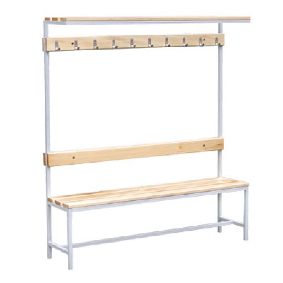 Скамья односторонняя для установки в спортивных раздевалках. Имеет 10 крючков для одежды.